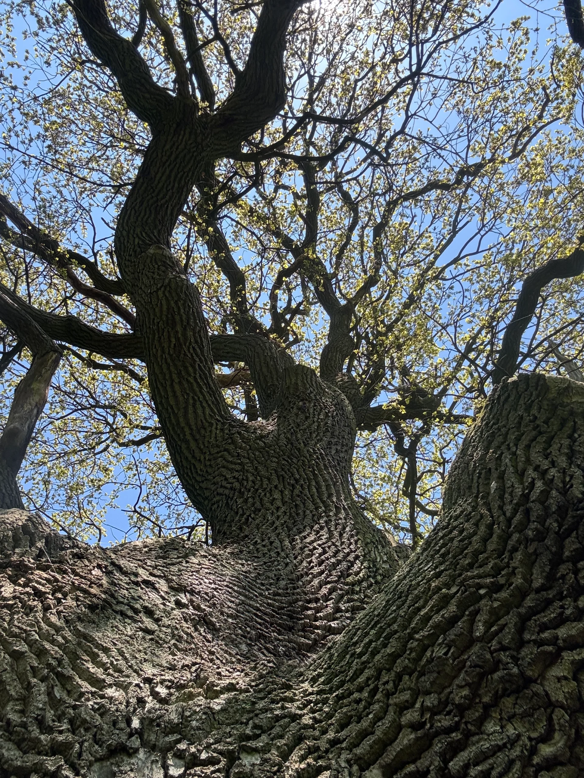 Die Eiche noch einmal von unten nach oben in das Geäst fotografiert. ein mächtiger Anblick.